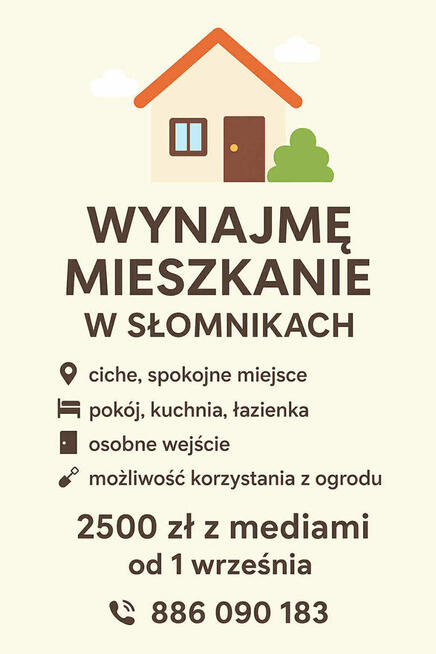 Do wynajęcia mieszkanie w Słomnikach ? ? Lokalizacja: ciche i spokojne miejsce, idealne do zamieszkania ?? ? Układ: ...